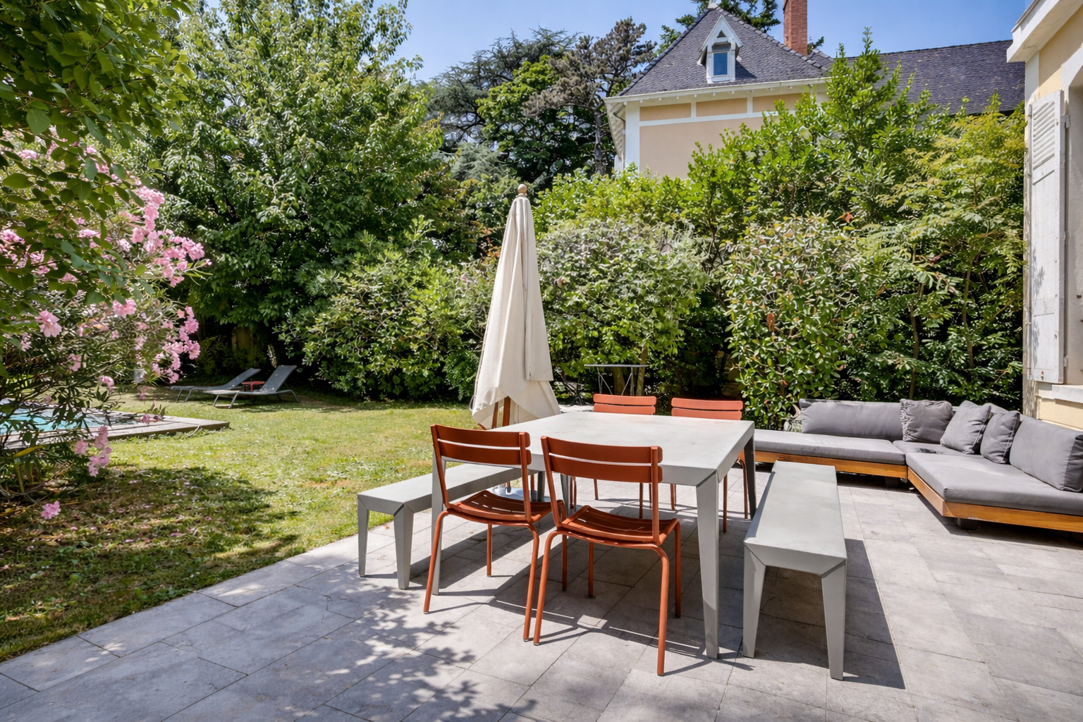 À l’extérieur, un agréable jardin permet de profiter pleinement des beaux jours dans un cadre calme et verdoyant.